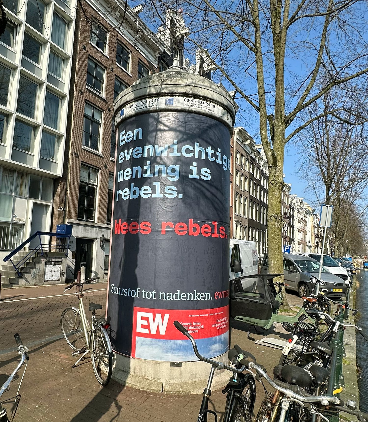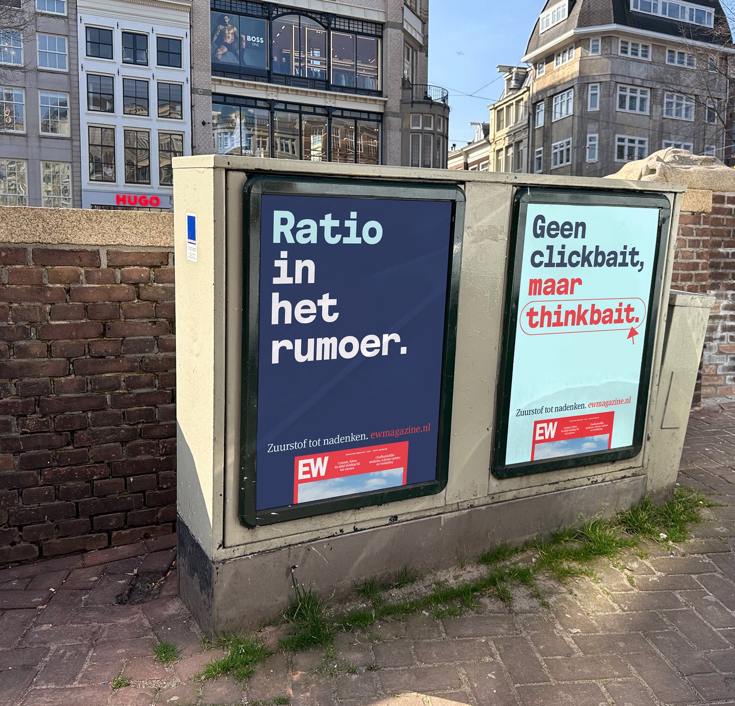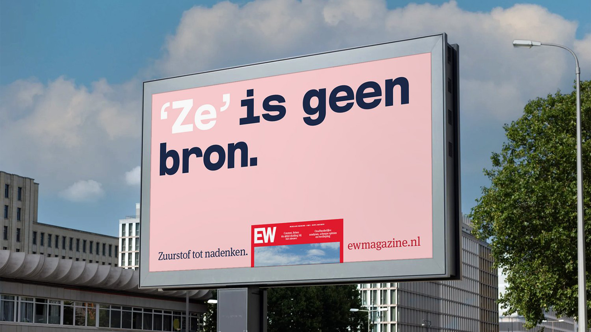 We herpositioneerden EW Magazine als de bevrijder van het beklemmend of-of denken dat tegenwoordig overal in de samenleving voelbaar is. We beloven zuurstof te geven aan het debat, in plaats van brandstof aan nog meer verdeeldheid. Met een prikkelende merkcampagne nodigden we de mensen in het betrokken midden uit om kritisch te blijven nadenken en de intellectuele vrijheid met de zuurstof van EW met volle teugen in te ademen.
